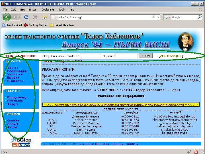 ЮБИЛЕЙНА СРЕЩА НА ВИПУСК ’ 84 20 години от завършването на първия висш курс на ВТУ “Тодор Каблешков” - София http: //vip 1. vtu. bg/