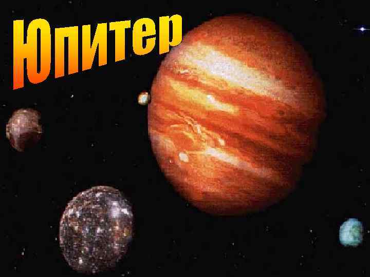 Юпи тер — пятая планета от Солнца, крупнейшая в Солнечной системе. Наряду с Сатурном, Ураном и Нептуном Юпитер классифицируется как газовый гигант Полярный радиус 66 854 ± 10 км[1] l Площадь поверхности (S) 6, 21796· 1010 км² l Объём (V) 1, 43128· 1015 км³ l Масса (m) 1, 8986· 1027 l Средняя плотность (ρ) 1, 326 г/см³[1] l Период вращения (T) 9, 925 часа[1] l Наклонение (i) 1, 03° l