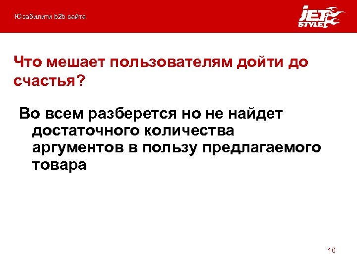 Юзабилити b 2 b сайта Что мешает пользователям дойти до счастья? Во всем разберется но не найдет достаточного количества аргументов в пользу предлагаемого товара 10