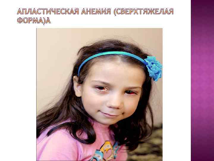 Клиническая картина. Можно выделить три основных синдрома: Анемический: повышенная утомляемость, слабость, бледность кожных покровов и видимых слизистых оболочек Геморрагический: проявляется различными кровотечениями (носовыми, маточными), развитием кровоподтеков. Септико-некротический: некрозы слизистых оболочек, высокая лихорадка, различные воспалительные заболевания (пневмония) Печень и селезенка обычно не увеличены, но при обнаружении антител к эритроцитам (аутоиммунная форма болезни) могут определяться умеренная спленомегалия, а также легкая желтушность кожи и склер вследствие наличия гемолитического компонента