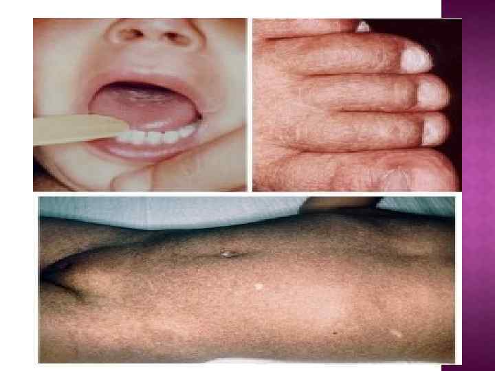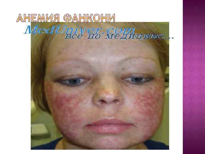 Наследственные апластические анемии Анемия Фанкони. У детей имеются дефекты развития костной ткани (отсутствие лучевой кости, I пальца кисти руки, косорукость и др. ); наблюдаются микрофтальмии, врожденные пороки сердца, аномалия почек и др. Заболевание проявляется обычно с 4 -10 лет или ранее. Жалобы на общую слабость, головную боль, склонность к простудным заболеваниям. Печень, селезенка, лимфатические узлы не увеличены. В анализе крови: анемия нормохромного типа, анизоцитоз со склонностью к макроцитозу; иногда - шизоцитоз, базофильная пунктация эритроцитов; количество ретикулоцитов сначала увеличено до 2, 5%, однако остается неадекватным тяжести анемии; в дальнейшем развивается ретикулоцитопения вплоть до их полного отсутствия. Возможен умеренный гемолиз, преимущественно скрытый, без гипербилирубинемии и спленомегалии, но с наличием ретикулоцитоза; выраженная лейкопения, тромбоцитопения; СОЭ увеличена до 65 -80 мм/ч. Пунктат костного мозга малоклеточный, что подтверждается и при трепанобиопсии. В миелограмме повышено содержание плазматических клеток, липофагов, пигментофагов. Количество недифференцированных клеток остается в норме. Содержание клеток гранулоцитарного ростка значительно снижено, а процентное содержание лимфоцитов, напротив, увеличено. Количество эритрокариоцитов вначале увеличено с наличием мегалобластоидных элементов, а затем постепенно редуцируется. Течение болезни хроническое; продолжительность жизни от 1 до 18 лет; смерть наступает от кровотечения, случайных инфекций.