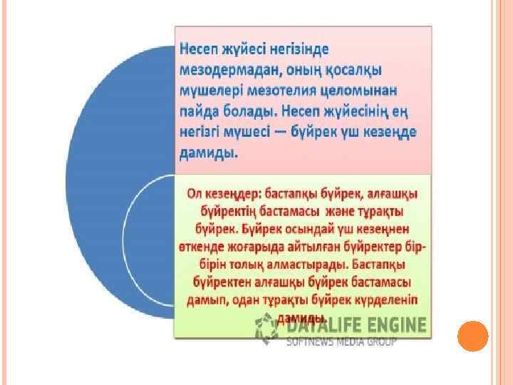 Нефронның құрылысы мен атқаратын қызметі 1. 2. 3. Капсулаға Нефрон- бүйректің негізгі капиллярлардан қызметін атқаратын бірлігі болып тұздар, глюкоза, амин табылады. Бүйректе 1 млн қышқылдары мен басқа дай нефрон болады. заттар еріген су түзеді. Нефрон капсуладан капилляр түйнегінен және иілген өзекшеден (түтікте) тұрады. Нефронда қаннан зиянды заттар, артық су, тұздар, дәрумендершығары латын процестер жүреді.