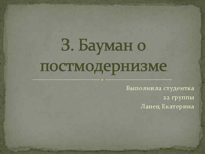 З. Бауман о постмодернизме Выполнила студентка 22 группы Ланец Екатерина
