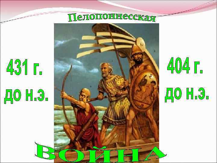 Пелопоннесская война делится на два этапа: - 431 - 421 гг. до н. э. – «Архидамова война» - 415 – 405 гг. до н. э. – «Деклейской войной» или «Ионийской войной»