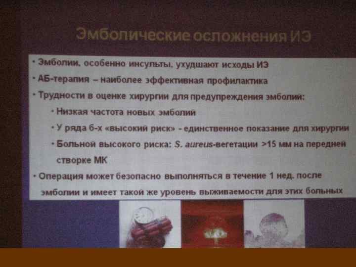Особые клинические формы • • ИЭ наркоманов ИЭ протеза клапана ИЭ с имплатированным кардиостимулятором ИЭ у пациентов с программным гемодиализом ИЭ у реципиентов трансплантированного органа ИЭ нозокомиальный ИЭ у пациентов с ПМК ИЭ у пациентов с ГКМП