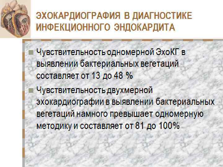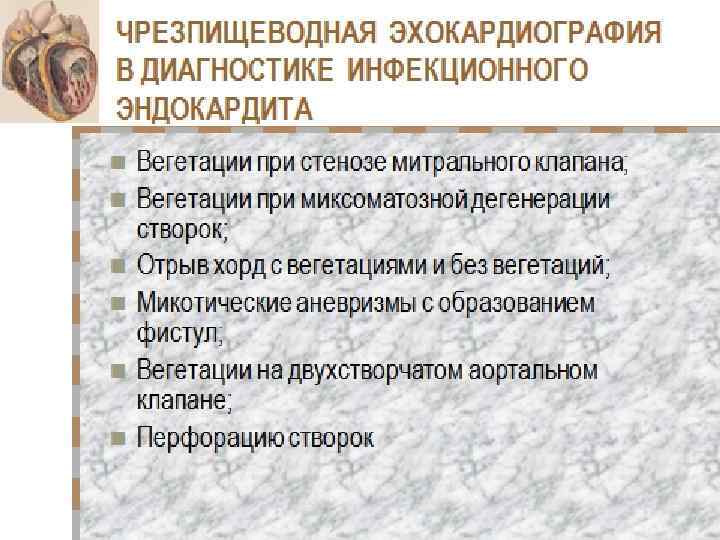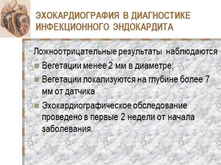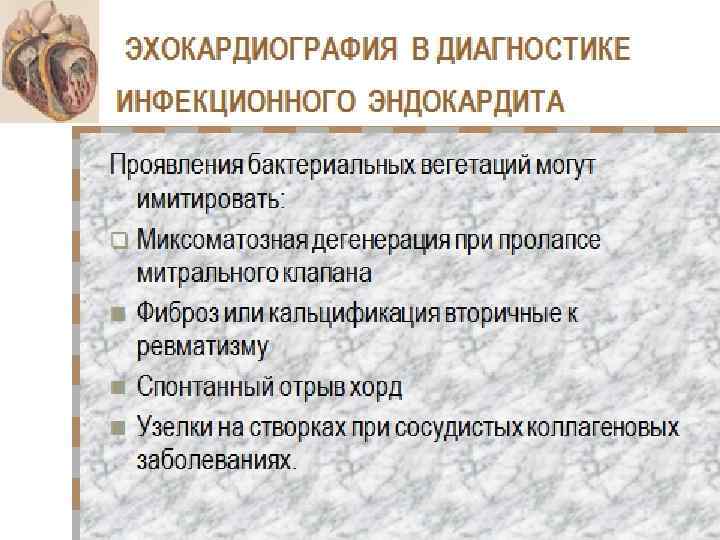 Возможности Эхо. КГ диагностика вегетаций; локализация вегетаций; определение размера и характера вегетаций;
