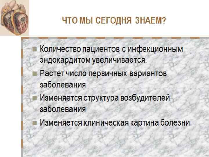Увеличение заболеваемости обусловлено: • • • Инъекционные наркоманы Кардиохирургические операции Инвазивные манипуляции Зондирование сердца Постановка кардиостимуляторов Хронический гемодиализ