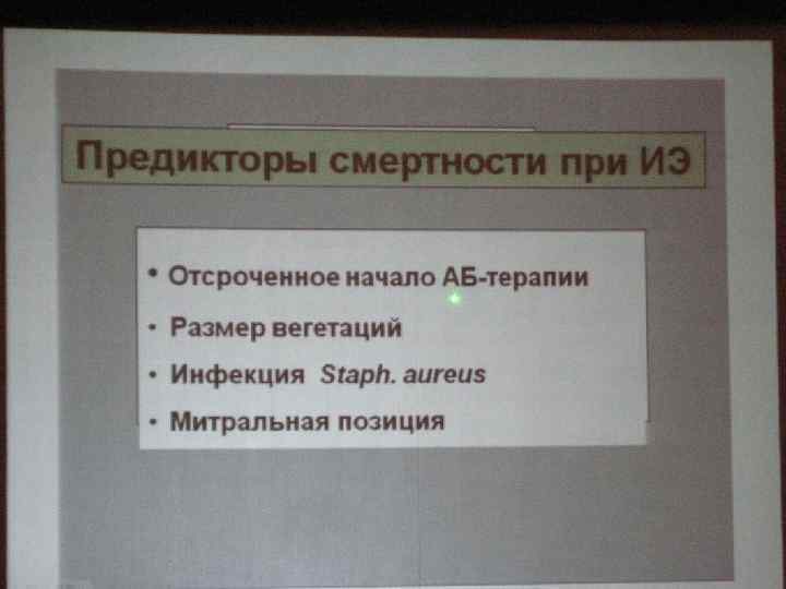 Причины • Инфицирование внутривенных катетеров – 10 -24% • Гемодиализных шунтов – 57 -61% • В России после имплантации кардиостимуляторов ИЭ развивается у 0, 51% больных • Летальность в этой группе больных составляет 48%
