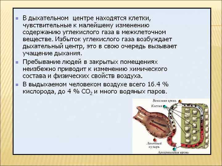 Нарушения альвеолярной вентиляции 2. Гипервентиляция - причины: - Избыточная активность дыхательного центра (истерия, боли, лихорадка, возбуждающие лек. средства); - ИВЛ. - Гипервентиляция приводит к развитию гипокапнии, что приводит к нарушению коронарного и мозгового кровотока (в следствии вазоконстрикции).