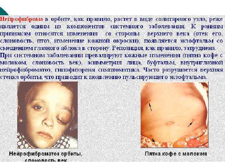 Воспалительные заболевания орбиты: Развивается остро. Экзофтальм, ограничение подвижности глазного яблока; резкий отек и Тромбофле гиперемия век, бит гиперемия и хемоз глазниц конъюнктивы, ы– застойная острый гиперемия кожи. воспалите Офтальмоскопичес льный ки – явления процесс застойного диска вен зрительного нерва глазницы. и кровоизлияния в сетчатку. 1. Антибиотики широкого спектра парентерально (пенициллины, цефалоспорины, аминогликозиды и др. ). 2. Местная антибактериальная терапия (инстилляции, субконъюнктивальные или парабульбарные инъекции). 3. При наличии флюктуации – вскрытие гнойника широкими разрезами, дренирование.