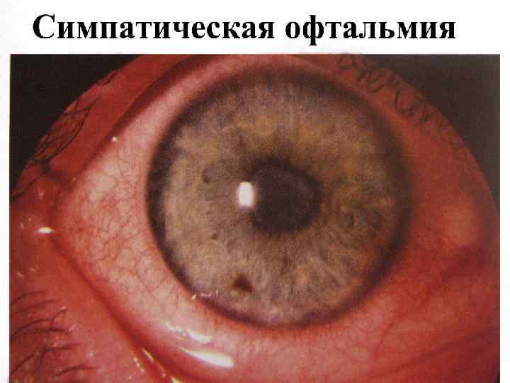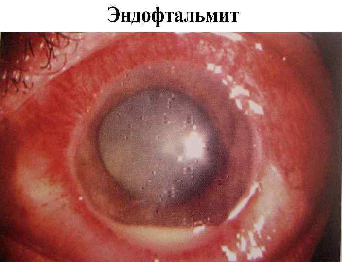 Особенности увеитов различной этиологии • Метастатический увеит: – Занос инфекции при менингите, пневмонии, сепсисе; – В виде эндофтальмита и панофтальмита: • эндофтальмит – поражение всех внутренних оболочек глаза с абсцедированием стекловидного тела; хемоз конъюнктивы, гипопион, падение функций, желтый рефлекс в области зрачка; • Панофтальмит – гнойное воспаление всех оболочек глаза и ретробульбарной клетчатки. Клиника: выраженный хемоз, выпячивание глаза, отсутствие подвижности, высокая температура, лейкоцитоз, септические проявления; • В исходе атрофия глазного яблока.