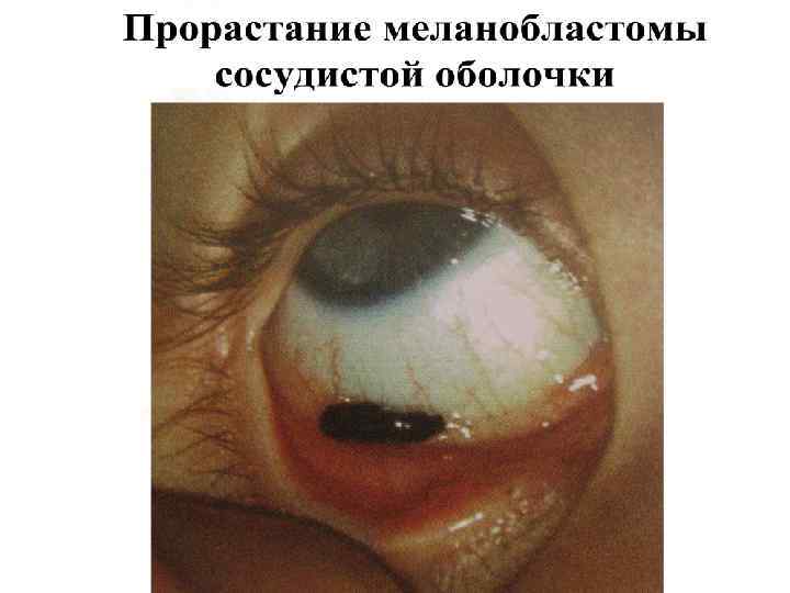Стадии динамического роста меланобластомы • 1 стадия – опухоль не превышает 5 мм. в пределах анатомической зоны; • 2 стадия – прорастание в соседние ткани (склеру, сетчатку) до 10 мм. ; • 3 стадия – узел на поверхности склеры прорастает в глазницу, возникают в глазу вторичные реакции (отслойка сетчатки, вторичная глаукома, катаракта) размер до 15 мм. ; • 4 стадия – метастазирование опухоли в печень, мозг, желудок.