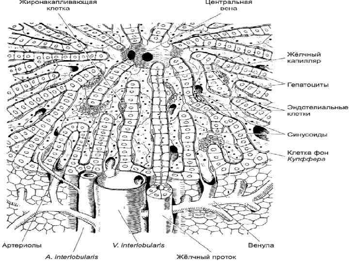 МОРФОЛОГИЧЕСКАЯ СТРУКТУРА ПЕЧЕНИ РЭС-система (клетки Купффера – мононуклеарные фагоциты). Маркёры: ● глобулины. Функции: ● очищение крови от чужеродных антигенов; ● инактивированных факторов гемостаза; ● фагоцитоз эритроцитов; ● инактивация кортикостероидов; ● синтез глобулинов; ● транспорт Ig A в желчь.