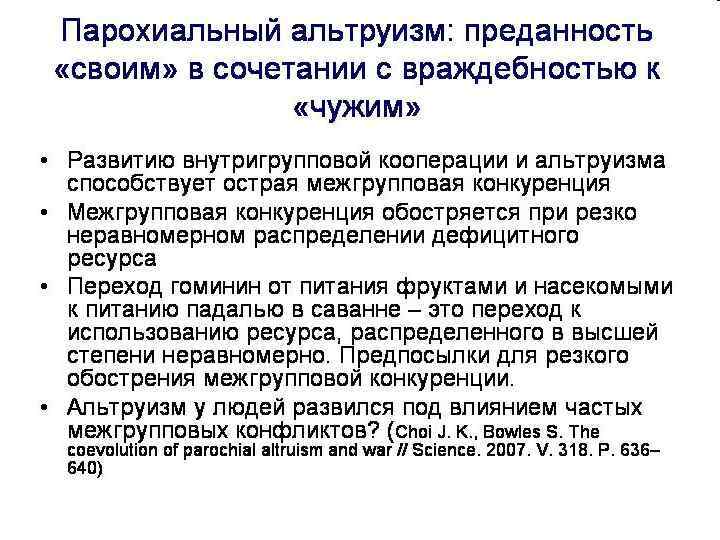 Зачем Разум? «гипотеза экологического интеллекта» - разум у приматов развился для эффективного поиска фруктов или, скажем, выковыривания пищи из труднодоступных мест. Она не может объяснить, зачем приматам такой большой мозг, если другие животные (скажем, белки) отлично справляются с очень похожими задачами по добыче пропитания, а мозг у них при этом остается маленьким. «гипотеза социального интеллекта» - положительная корреляция между размером мозга у приматов и размером социальной группы (приматы, в отличие от большинства стадных животных, знают всех своих соплеменников «в лицо» и с каждым имеют определенные взаимоотношения).