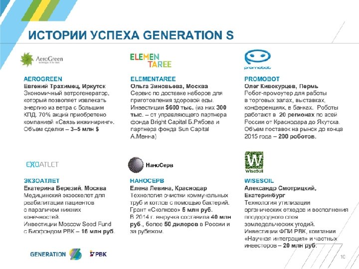 Отраслевые направления Generation. S – 2016