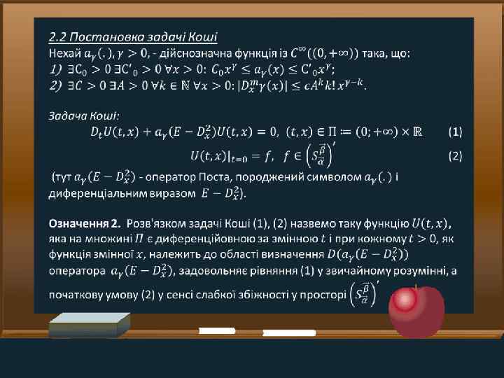 «Задача Коші для параболічного рівняння з псевдодиференціальним оператором Е. Поста» (Дипломна робота) Виконавець : Горошовська Марина Дмитрівна Нук. керівник : Літовченко Владислав Антонович