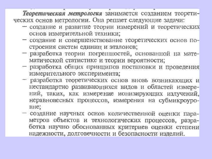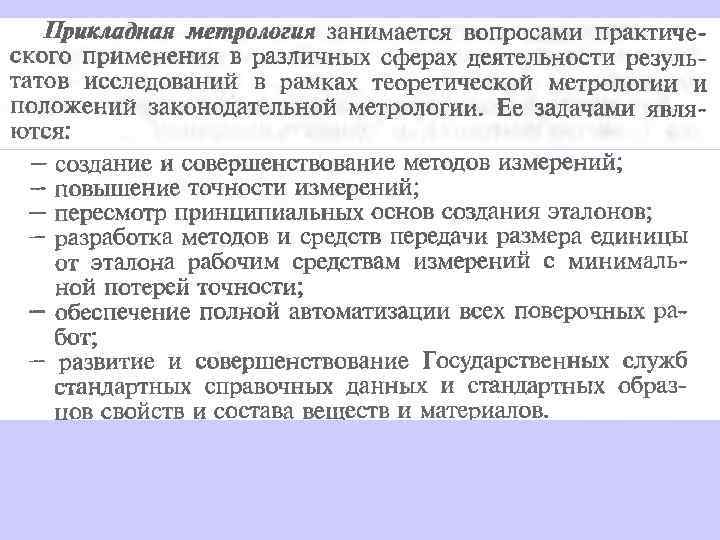 Измерение - получение любых количественных характеристик материальных объектов опытным путем. Измерения бывают прямыми (когда объект непосредственно сопоставляется с носителем единицы измерения, например, измерение длины линейкой) и косвенными (когда измеряемая величина рассчитывается из других измеренных величин, например, измерение глубины с помощью эхолота) Необходимо обеспечить единство измерений, т. е. чтобы результат измерения не зависел от времени, места, человека и т. д.
