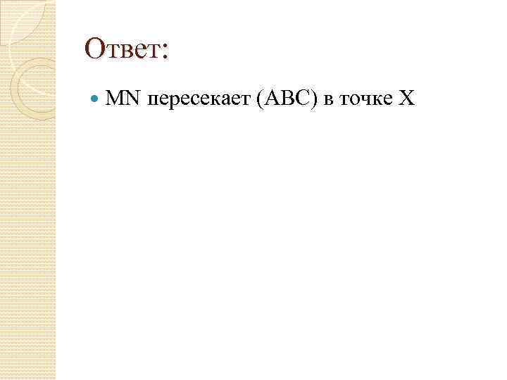 Ответ: МN пересекает (АВС) в точке Х