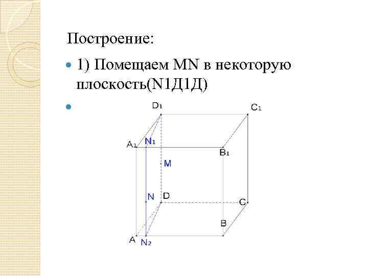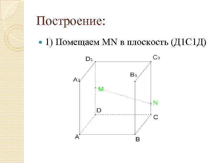 Построение: 1) Помещаем МN в плоскость (Д 1 С 1 Д)