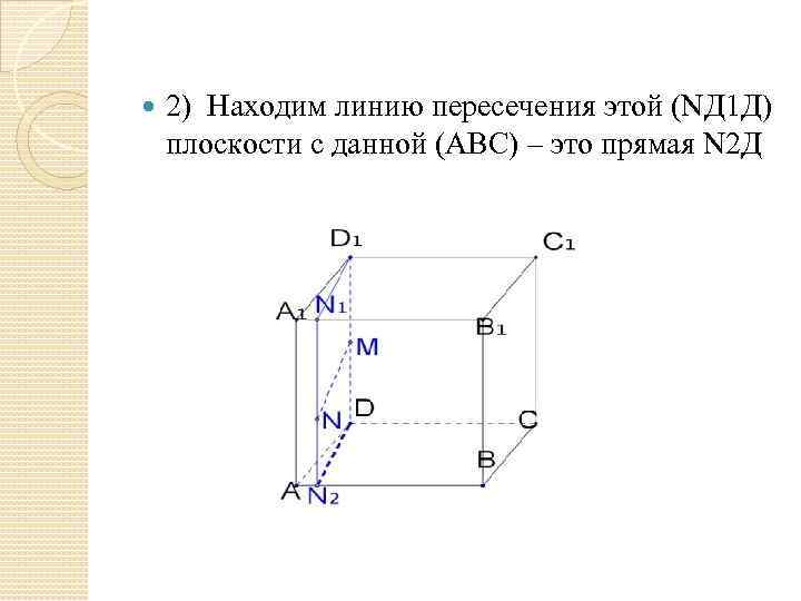 2) Находим линию пересечения этой (NД 1 Д) плоскости с данной (АВС) – это прямая N 2 Д