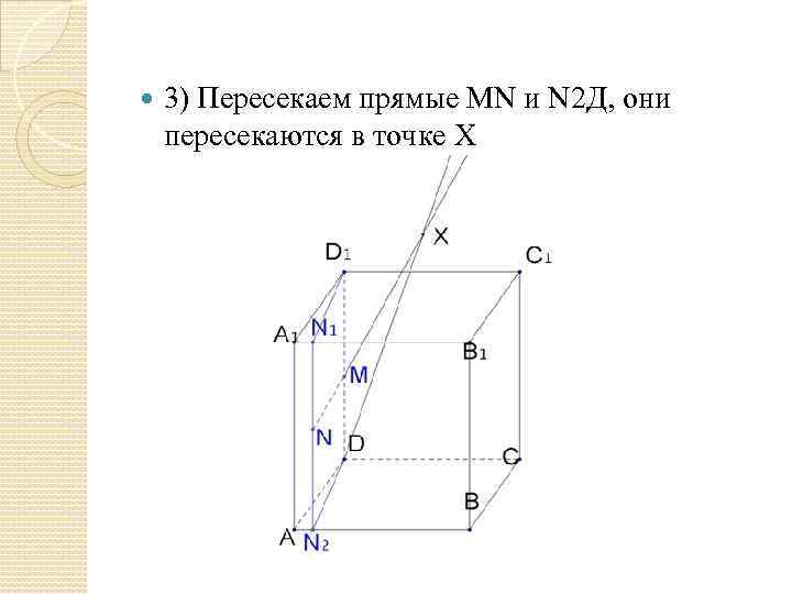 3) Пересекаем прямые МN и N 2 Д, они пересекаются в точке X
