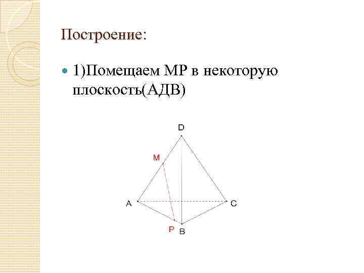 Построение: 1)Помещаем МР в некоторую плоскость(АДВ)