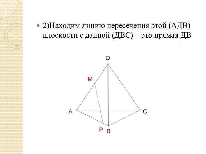 2)Находим линию пересечения этой (АДВ) плоскости с данной (ДВС) – это прямая ДВ