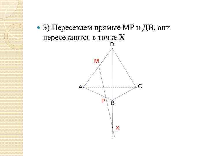 3) Пересекаем прямые МР и ДВ, они пересекаются в точке Х