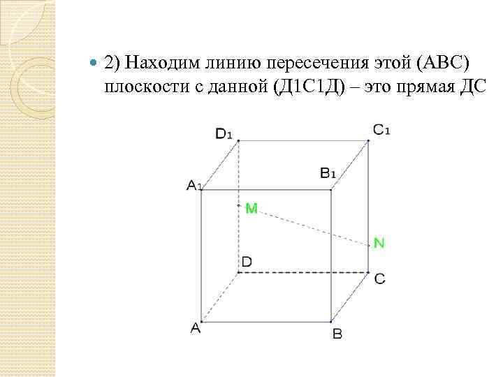 2) Находим линию пересечения этой (АВС) плоскости с данной (Д 1 С 1 Д) – это прямая ДС