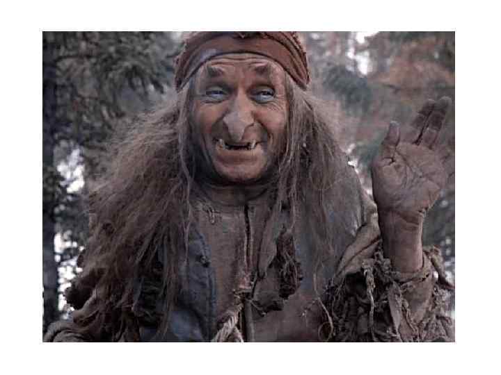 Баба Яга живет в избушке на курьих ножках на границе двух миров (мира живых и мира мертвых). Чтобы попасть в избушку – надо ее повернуть «к лесу задом – к себе передом), т. е. повернуть к миру живых. Баба Яга связана с ночью и тьмой. Изображается всегда старой (костяная нога). Она слепа, не видит, а чует носом ( «русским духом пахнет» ). Баба Яга, выказав свое недовольство, накормит гостя своей пищей (пищей другого мира) и истопит баню. Помывшись в бане, гость смывает с себя «дух живых» . После этого Баба Яга признает его за «своего» и может оказать ему помощь.