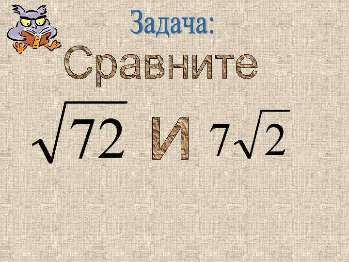 Представьте в виде произведения, так чтобы хотя бы из одного множителя корень извлекался • =9· 5 1) 45 2) 72 =36· 2 3) 50 =2· 25 4) 98 =2· 49 5) 12 =3· 4