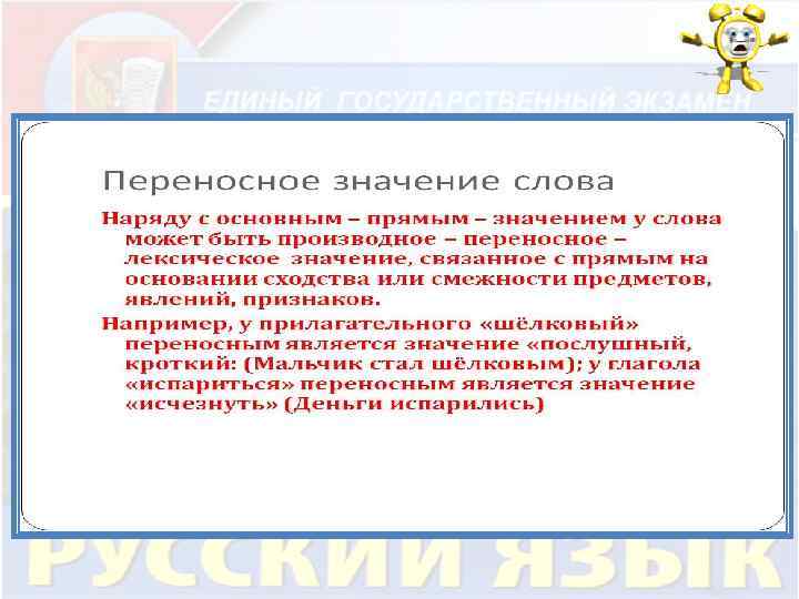 Что требуется знать при выполнении этого задания qнайти в указанном отрывке нужную лексическую единицу: синонимы, контекстные синонимы, антонимы, контекстные антонимы, фразеологизм, слово, употреблённое в переносном значении; q. Определить, какое лексическое значение имеет в указанном предложении то или иное слово.