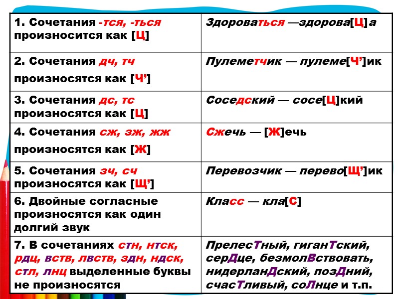 Позиции, в которых произношение согласных зависит от их положения в слове или от соседства с другими гласными или согласными.