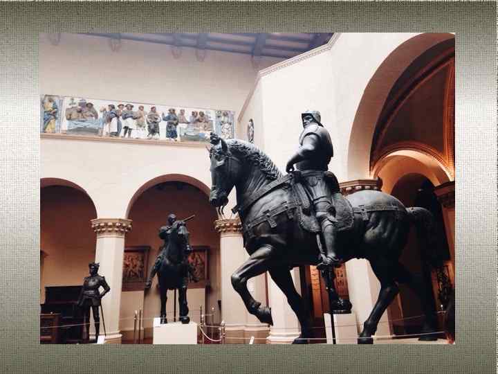 Скульптуры, представленные в продемонстрированных слайдах, вызвали у меня восхищение. Больше всего мне понравился слепок неизвестного мастера «Распятие. После 1230 г. » Слепок относится к отделу искусства Старых мастеров. Первоначально создатели музея назвали этот зал «Христианским двориком» , так как представленные в нем экспонаты восходят к художественной традиции, сложившейся на основе религиозно-философского мировоззрения христианства. Позднее появилось название «Итальянский дворик» . Экспозиция Итальянского дворика служит своеобразным введением к разделу скульптуры итальянского Возрождения в коллекции слепков Музея.