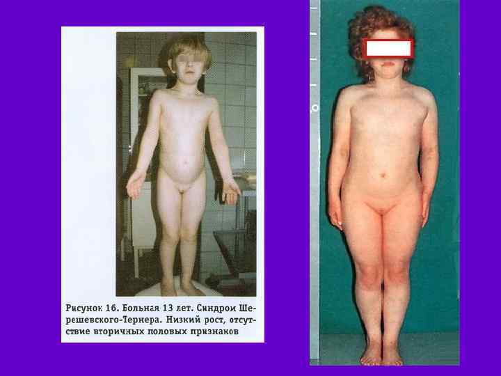 Синдром Свайера w Клинические признаки: наличие полового инфантилизма, высокого роста, соматических аномалий; женщины высокого роста, часто имеют евнухоидный тип тела; появление вторичных половых признаков не наблюдается; молочные железы отсутствуют или слабо развиты; наружные и внутренние гениталии женского типа, гипопластичны; оволосение скудное, характер его распределения женский; на месте яичников расположены гонадальные тяжи; все больные являются лицами женского пола, который им присваивается с момента рождения, до периода полового созревания не подозревают о своем заболевании; у лиц с кариотипом 46, ХУ может наблюдаться гипертрофия клитора, иногда значительное, матка в виде рудимента.