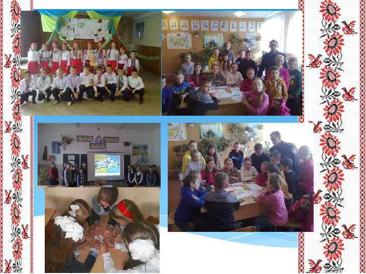 Клас Підпроекти 5 -А «Обряди та традиції мого села» Результат Книга «Весільна обрядовість села Велика Буда» Буклет. Мультимедійна презентація 5 -Б «Небесна сотня» Відкритий захід до Дня шанування «Небесної сотні» Книга “ Герої не вмирають” Стінна газета «Наші захисники» Сценарій свята «День Захисника України» 6 – А «Наші захисники» 6 – Б «Моя земля – земля моїх батьків» Виховна година «Моя земля – земля моїх батьків» 7 - А «Добро врятує світ» 7 -Б «Люби і знай свій рідний край» 8 - А «Політичні репресії – жахлива сторінка нашого села» Відкрита виховна година на ІІ МЩ класних керівників Стенд «Дерево добрих справ» . 1. Оформлення виставки та звіту про екскурсію до народної майстрині. 2. Створення презентацій «Наша бабуся – народна майстриня» , «Рушниками долю помережено» Презентація зібраних матеріалів у формі буклетів. Сценарій виховної години. 8 –Б «Створення історії села Круп’янск, Мала Мультимедийна презентация та книжка «Історія сіл» . Буда» 9 – А, Б 10 -А «Духовний скарб нашогокраю» Створення маршрутної карти «Духовними стежками нашого краю» . Мультимедійна презентація «Екологія села» Буклет «Як зберегти екологію села? » «Поради для тих, хто любить своє село» 10 - Б «Я громадянин України» Листівки «Я громадянин – маю обов'язки » 11 «Зростаймо патріотами» Організація тематичних фотовиставок, присвячених визначним подіям в історії українського народу