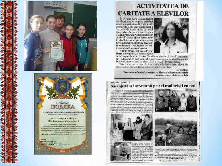 Підпроекти Клас Завдання Термін виконання Відповідальний 5 -А «Обряди та традиції мого села» Протягом Мошнягу В. І. навчального року 5 -Б «Небесна сотня» Вересень-лютий Даскалу Ю. К. 6 – А «Наші захисники» Юря Л. Г. 6 – Б «Моя земля – земля моїх батьків» Вересеньжовтень Навчальний рік 7 - А «Добро врятує світ» Навчальний рік Педурару Т. М. 7 -Б 8 - А «Люби і знай свій рідний край» Навчальний рік «Політичні репресії – жахлива сторінка нашого села» Навчальний рік Марущак С. Г. Алекса Л. М. 8 –Б «Створення історії села Круп’янск, Мала Буда» Навчальний рік Арсеній Л. К. 9 –А, Б «Духовний скарб нашого краю» Навчальний рік 10 -А «Екологія села» Навчальний рік Сандулов Л. Ф. Тімофті Е. І. Олар М. І. 10 - Б «Я громадянин України» Навчальний рік Лис А. Д. 11 «Зростаймо патріотами» Навчальний рік Герман В. Д. Біля О. Ф.