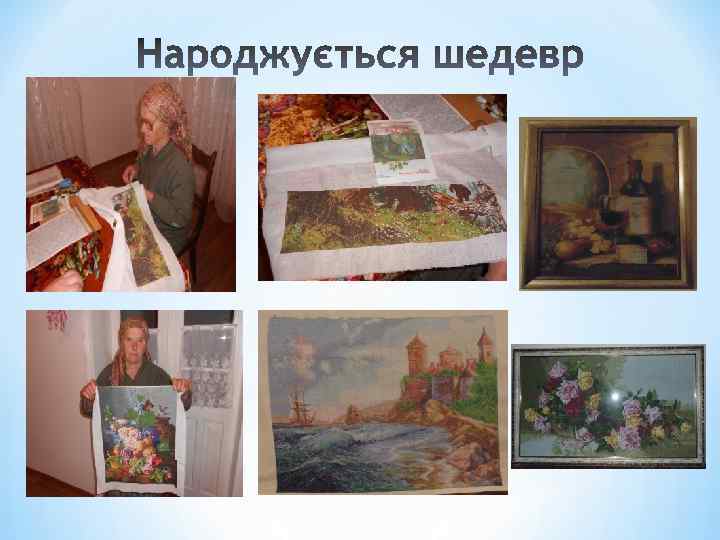Улюблена бабуся – найкраща майстриня • Шабага Галина Леонтіївна народилася у селі Абрикосівка Камянець-Подільського району Хмельницької області. • З 1963 року проживає у селі Мала Буда, де виростила чотирьох дітей. • Захоплюється в язанням та вишивкою. язанням • Її першою вишивкою був рушник, вишитий хрестиком чорними і червоними нитками у 1962 році