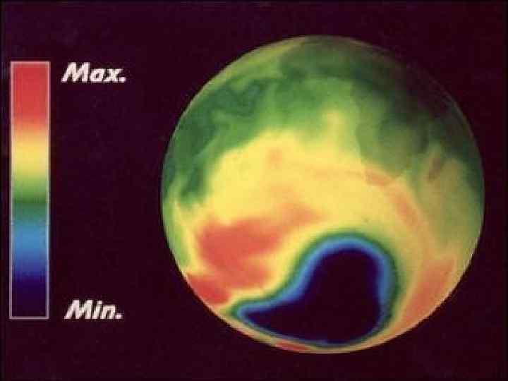 ИСТОЩЕНИЕ ОЗОНОВОГО СЛОЯ В настоящее время истощение озонового слоя признано всеми как серьезная угроза глобальной экологической безопасности. Снижение концентрации озона ослабляет способность атмосферы защищать все живое на Земле от жесткого ультрафиолетового излучения. Не случайно поэтому в районах с пониженным содержанием озона многочисленные солнечные ожоги, наблюдается рост заболеваемости людей раком кожи и др. . Установлено также, что растения под влиянием сильного ультрафиолетового излучения постепенно теряют свою способность к фотосинтезу, а нарушение жизнедеятельности планктона приводит к разрыву цепей водных экосистем, и т. д.