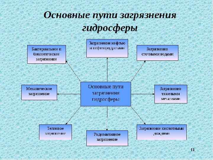 Главными источниками загрязнения являются • Промышленные сточные воды • Водный транспорт • Сельское хозяйство