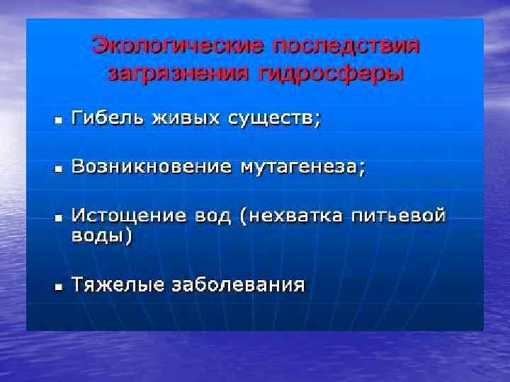 ЗАГРЯЗНЕНИЕ И ЗАЩИТА ГИДРОСФЕРЫ