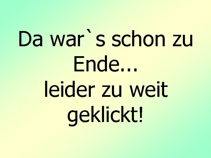 Da war`s schon zu Ende. . . leider zu weit geklickt!