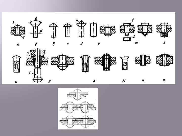 Неразъёмное соединение, образуемое с помощью пробивки отверстий в соединяемых деталях и введения в это отверстие заклёпки. В конструкции планера широкофюзеляжного самолета до 75 % всех соединений выполняется при помощи заклепок. Ил– 86 содержит до 1, 5 млн. штук заклепок.