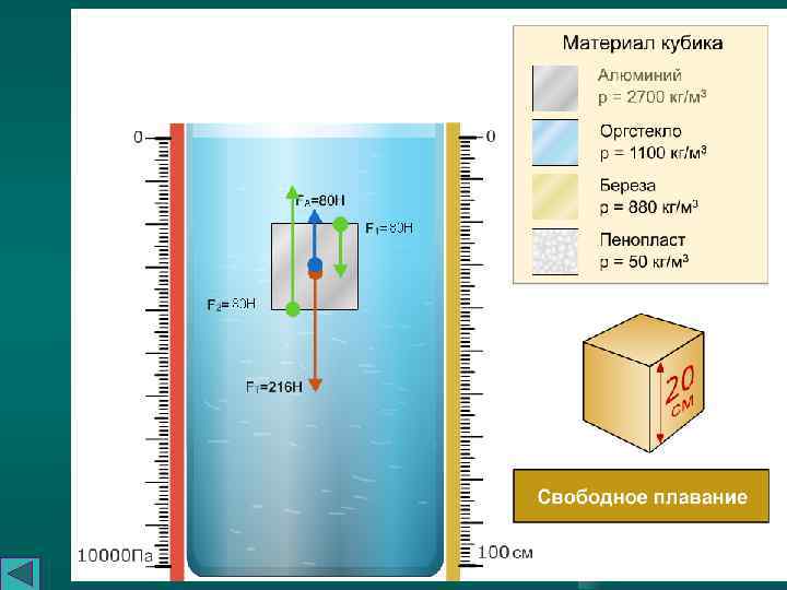 Условие плавания тел n n n Если плотность тела больше плотности жидкости, то тело в ней тонет. Если плотность тела меньше плотности жидкости, то тело в ней всплывает. При равенстве плотностей тела и жидкости, тело плавает.