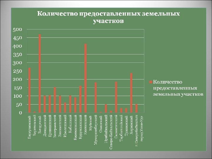 Реализация Закона Республики Бурятия от 16 октября 2002 года № 115 -III на территории г. Улан-Удэ • • По информации, представленной Комитетом по управлению имуществом и землепользованию г. Улан-Удэ в настоящее время ведется подготовительная работа по предоставлению бесплатных земельных участков, в количестве 582 земельных участка, в п. Забайкальский, г. Улан-Удэ. Предоставление будет осуществляться до 01. 04. 2013 г. по заявлениям, поданным до вступления в силу Закона от 15. 11. 2011 № 2359 -IV «О внесении изменений в некоторые законодательные акты Республики Бурятия» . Для дальнейшей реализации Закона Республики Бурятия от 16. 10. 2002 № 115 -III «О бесплатном предоставлении в собственность земельных участков, находящихся в государственной и муниципальной собственности» Администрация г. Улан-Удэ рассматривает площадки для бесплатного предоставления земельных участков для индивидуального жилищного строительства в 124, 130, 149, 150 микрорайонах г. Улан-Удэ общей площадью 97, 9 га.