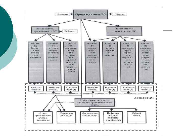 Законодательный процесс, как и любая иная деятельность государства, детально регламентируется специальным законом. Его соблюдение является необходимым условием признания каждого вновь принимаемого закона в качестве регулятора общественных отношений. 1) выявление основных социальных позиций по обсуждаемым законопроектам и объективно существующих в обществе противоречий ( «взрывы» страстей в парламенте — это не столько повод для рассуждений о вздорности и никчемности депутатского корпуса, сколько возможность своевременного обнаружения региональных, межрегиональных, классовых, национальных и т. п. конфликтов); ¡ ¡ 2) «притирка» несовпадающих воззрений, идеологических установок при выработке парламентских решений, в том числе путем включения в законодательную процедуру федеральных органов исполнительной власти, органов государственной власти субъектов Федерации через механизмы «сдержек» и «противовесов» , «стороннего влияния» (поиск социального компромисса); 3) выбрасывание «социального пара» (пусть лучше на повышенных тонах общаются между собой депутаты в парламентской дискуссии, помогая снижать психологическое напряжение стоящим за ними группам населения, чем эти группы будут конфликтовать непосредственно между собой); ¡ ¡ 4) легитимация государственного аппарата (избирая парламент, граждане становятся через его деятельность сопричастными деятельности государства в целом, всех ветвей власти — подлинно представительный парламент снижает уровень отчуждения между обществом и государством).