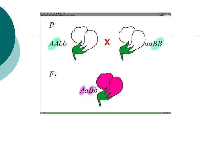 Р ♀ААвв х ♂аа. ВВ G Ав а. В F 1 Аа. Вв пурпурные Р (F 1) ♀Аа. Вв х ♂Аа. Вв G АВ Ав а. В ав F 2: 9 АВ : 3 Ав : 3 а. В : 1 ав пурп белые расщепление по генотипу 9: 7