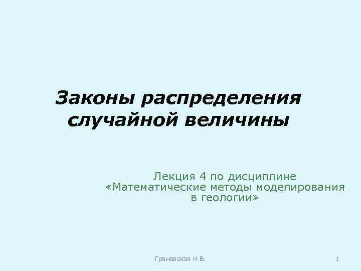 Законы распределения случайной величины Лекция 4 по дисциплине «Математические методы моделирования в геологии» Грановская Н. В. 1