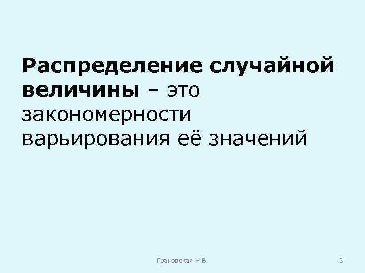 Распределение случайной величины – это закономерности варьирования её значений Грановская Н. В. 3