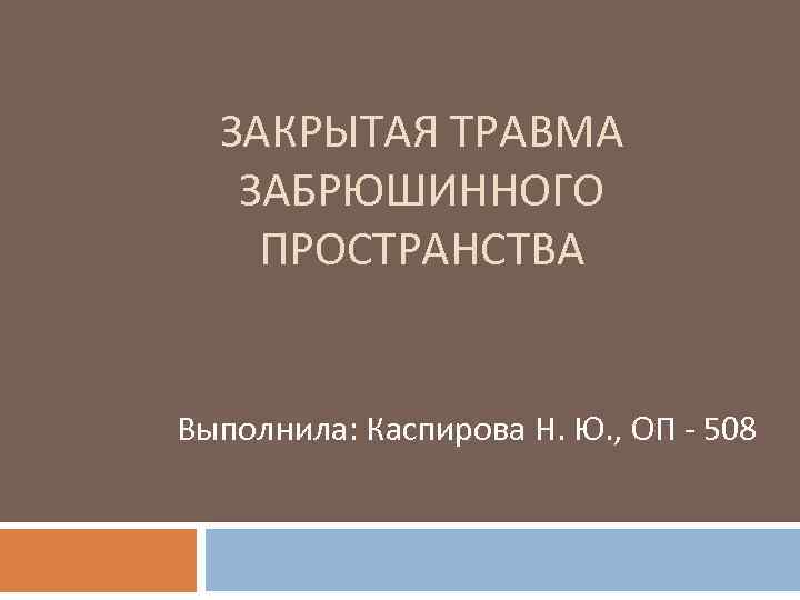 ЗАКРЫТАЯ ТРАВМА ЗАБРЮШИННОГО ПРОСТРАНСТВА Выполнила: Каспирова Н. Ю. , ОП - 508